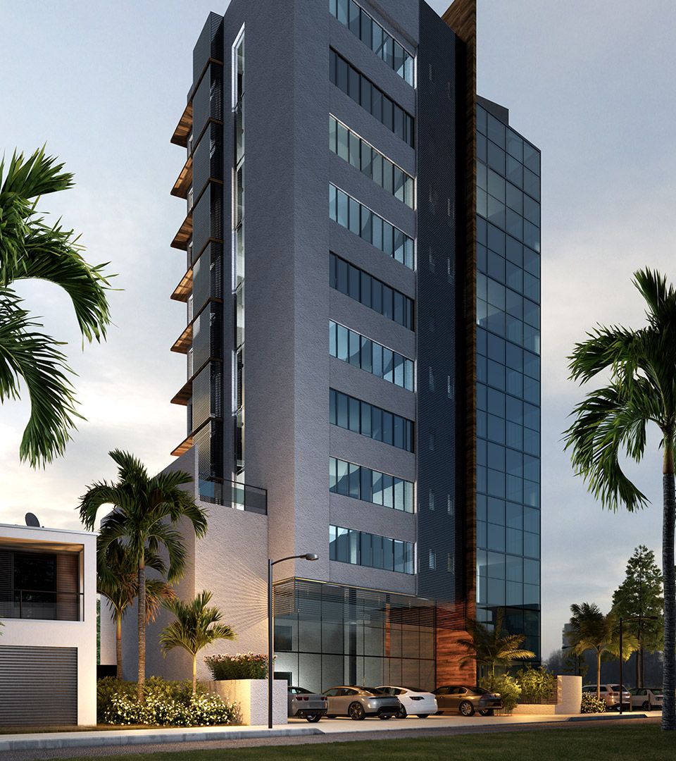 O projeto arquitetônico de 13 pavimentos é refinado, com pele de vidro. Garagens cobertas, recepção compartilhada, terraço técnico e baixa taxa condominial são algumas de suas características.